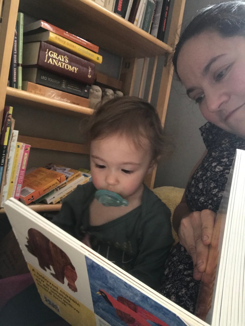 I had gone alone to the coffeeshop, but brought my daughter to the library. Lucy’s eyes were wide as she stood, taking it all in. I spoke with the librarian about the application I had started online, and within moments, was grinning ear to ear with library card in hand. I have a secondhand Kindle, which I have yet to use; but holding that card, I felt like I was given the keys to the castle from Beauty and the Beast. Any book I imagined I could conjure up and bring to me. The timing worked out well; just as I tucked the plastic card away, Lucy took off, thankfully to the children’s section. She stopped in her tracks and looked all around, trying to make it compute, before running over to the low table with its equally tiny chairs. She climbed up and spent a happy twenty minutes taking the crayons out of their basket and replacing them, occasionally moving a handful somewhere else nearby with seeming deliberation. I found myself, as I often do when I watch her play like this, wondering what spell she’s casting, what magic lives with her beautiful dark eyes. The moment breaks when she pulls down several books from a shelf. She’s found the books about trucks and other large operable machinery. I smile as she scatters a few of the books, and the pain slices me through like a scalpel, so sharp and neat, I don’t feel it right then. I don’t realize I’m crying until my hand comes away from my face, wet and streaked with running mascara. I don’t feel the ground beneath me until my knees start to buckle. I stay upright with a willpower borne of an audience, not willing to cause a scene, although we are almost the only patrons.